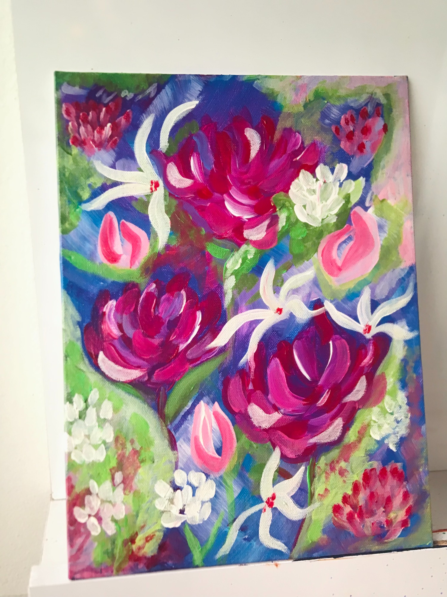 This collection is for me to have fun with flowers and colors, I paint these with children's bedroom on my mind hoping to bring light and and a little piece of a garden to a little girl .